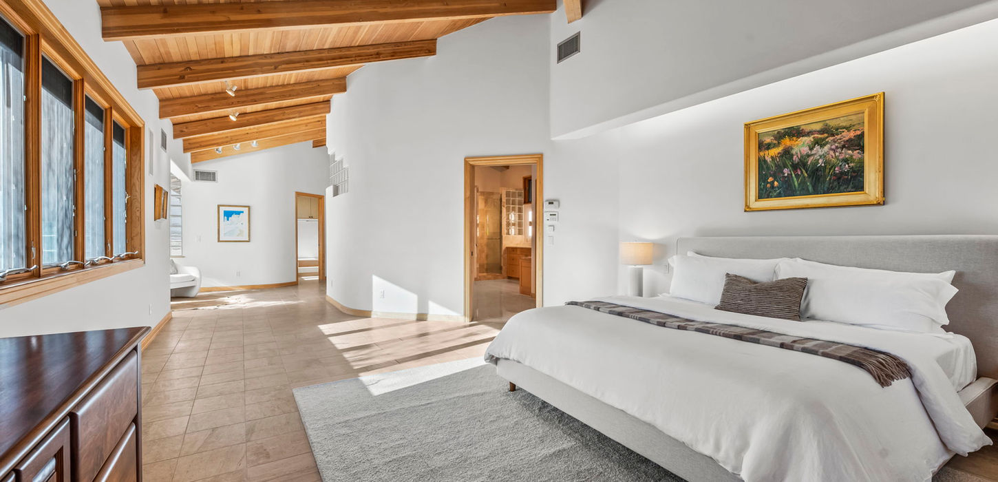 The garden level includes four bedrooms, three of which are en-suite. All are private and quiet, and enjoy views of the mountains. The garden level is ideal for a large family, multiple guest rooms, or conversion into a private caretaker's living quarters.